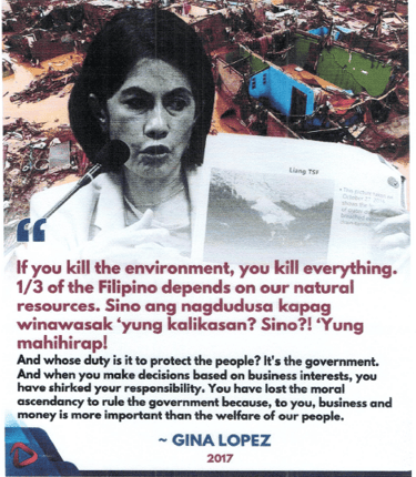 In 2017, Gina Lopez was deeply hurt by her removal as Secretary of the Department of Environment and Natural Resources (DENR), not for herself, but because she was worried about what her successor might allow to happen: the unchecked operations of abusive mining companies and the neglect of protecting our forests.